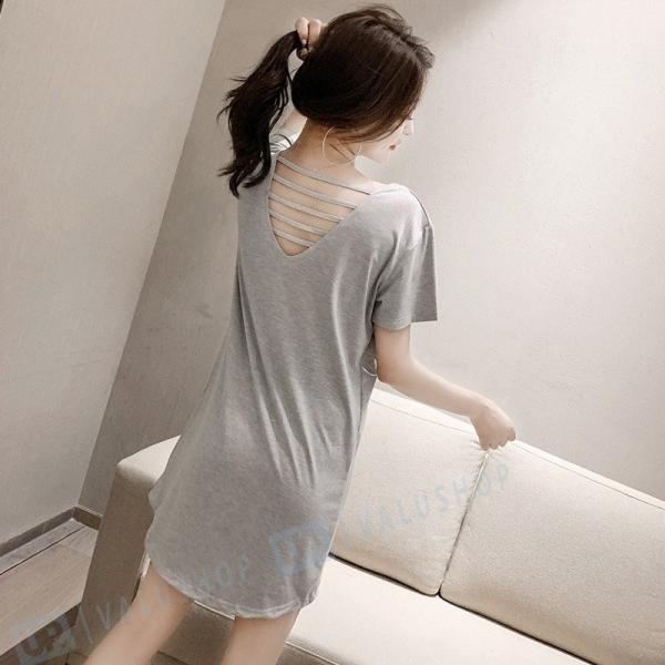 ネグリジェ パジャマ レディース 春夏 半袖ワンピース パジャマ 背中出し ネグリジェ ロング丈 もだー